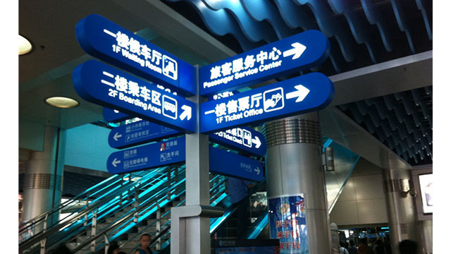 在城市標識系統(tǒng)中,交通標識要嚴格按照國家標準進行,更要在造型上全方位考慮城市獨特地域性特征,充分表現(xiàn)一個地域城市人們的精神面貌和地域文化的特點??瓦\中心站環(huán)境標識系統(tǒng)的設(shè)計要從標識的規(guī)劃入手,從形態(tài)、材質(zhì)、色彩、表現(xiàn)手法等美學方面把握標識系統(tǒng)的樣式及風格。在標識設(shè)計的眾多要素中,我們這里要特別強調(diào)的是安全性、功能性、造型性。在標識設(shè)計的眾多要素中,我們這里要強調(diào)的是功能性和簡潔性。