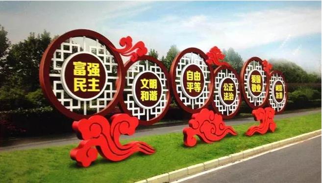 可以說,社會主義核心價值觀宣傳造型是近年來標識牌制作廠家制作較多的一種戶外標識產品。我們知道,社會主義核心價值觀是社會主義核心價值體系的內核,也是體現了社會主義核心價值體系的根本性質和基本特征,反映的是社會主義核心價值體系的豐富內涵和實踐要求,是社會主義核心價值體系的高度凝練和集中表達。