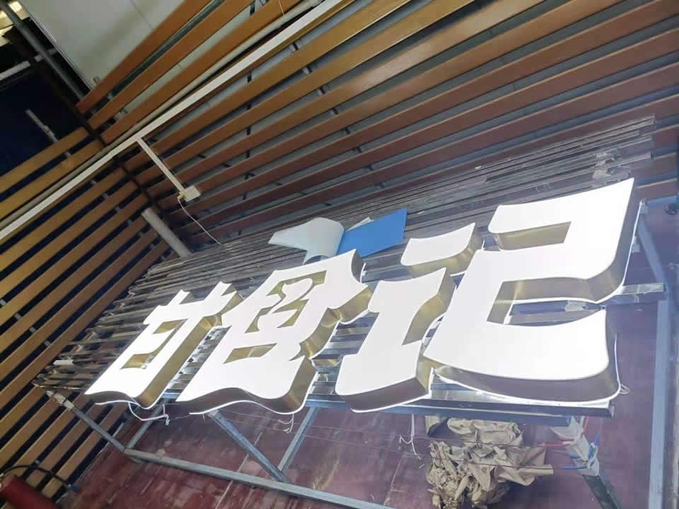 鈦金字直接敲打制作而成的鈦金廣告字。