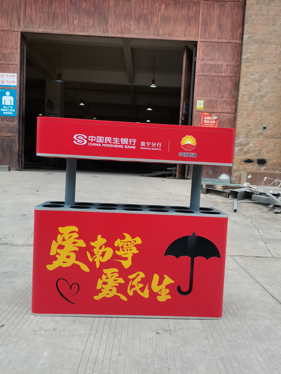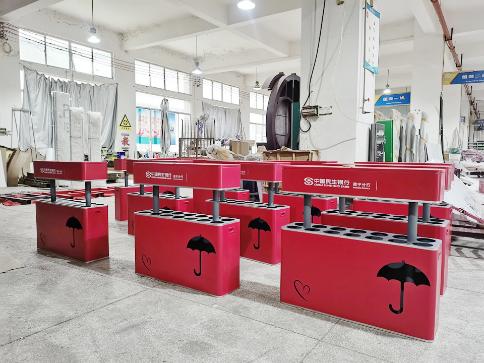 不銹鋼雨傘架,一般根據不同的場合會選擇不同的雨傘架,在地鐵里一般選用的是24位的帶鎖不銹鋼雨傘架,這款不銹鋼雨傘架也是帶鎖的,用于加油站,便于企業營銷公司產品,而酒店選擇的大部分都是雙頭自動的雨傘架。