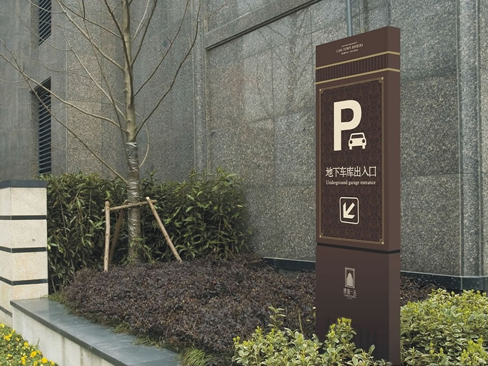 房地產標識系統項目個性化的標識系統,在房地產項目的運作中起到畫龍點睛的作用。標識系統主要用圖形及文字語言來表達,同時標識牌的色彩、材質、尺寸等外觀形象最大限度地用無聲的感官形象語言來表達房地產經營者對業主以及來來訪者的關心。視覺形象感覺在房地產項目標識系統中非常重要。同時,又對房地產區域環境起到了輔助管理的作用,讓每個人都服從標識牌的指示,迅速地到達目的地,業態名稱牌、溫馨提示牌、警示牌、公告欄、網絡信息系統、合理的停車系統,都能全面地解說房地產項目。